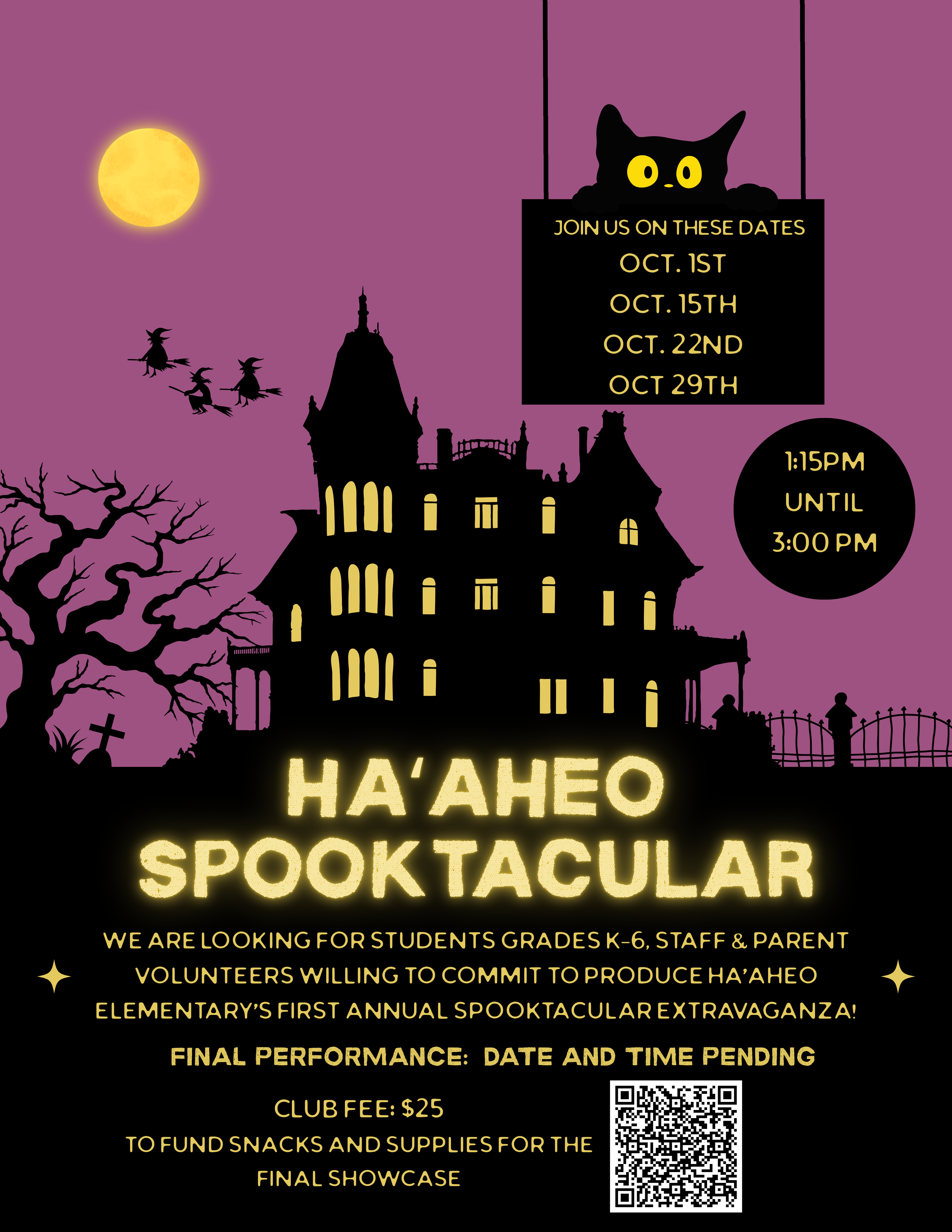 Please see attached flyer for more information regarding the Haʻaheo Spooktacular! Click HERE for more details and to sign up.