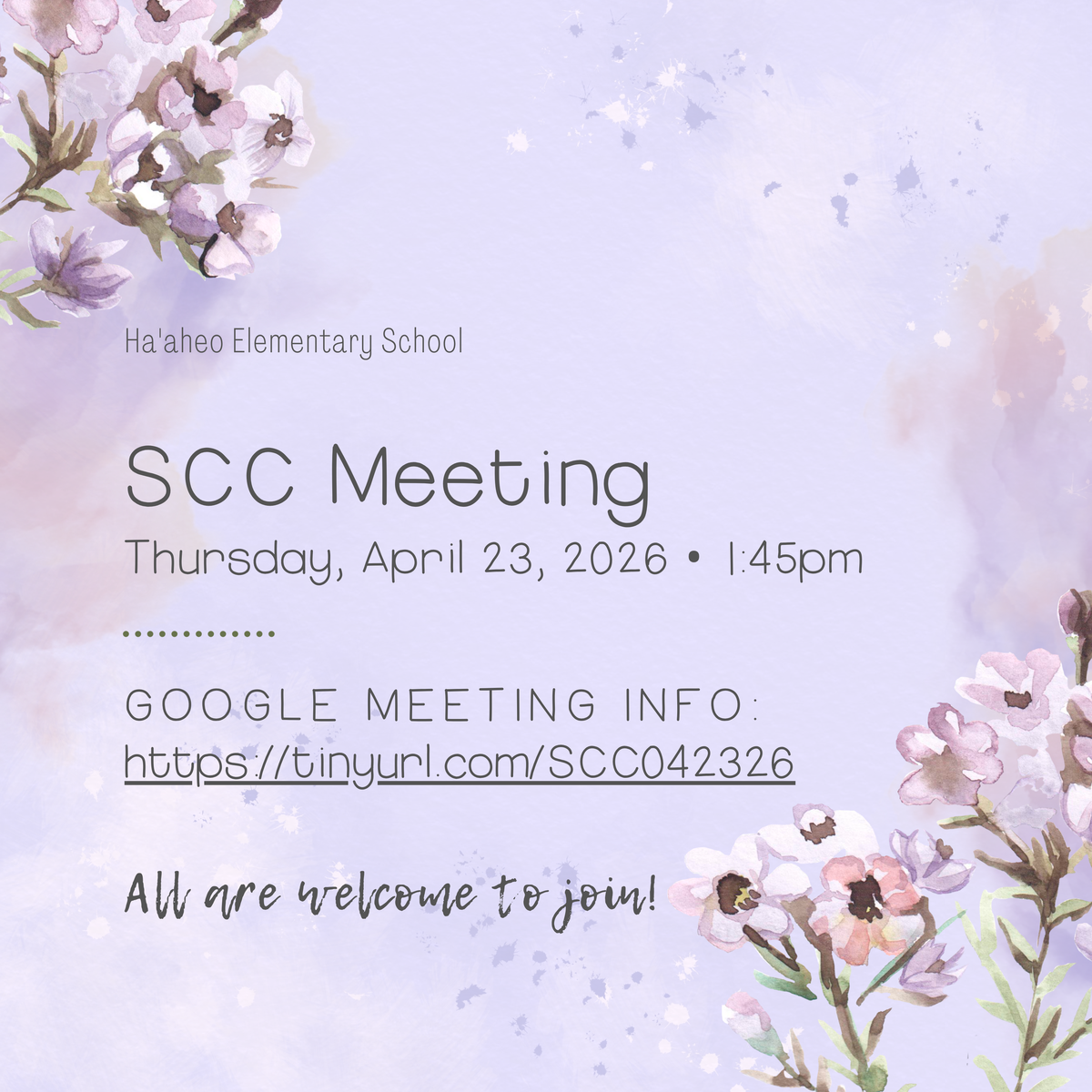 REMINDER: Please join us for our SCC Meeting on Thursday, April 23, 2026 at 1:45pm via Google Meet. Click HERE to join.