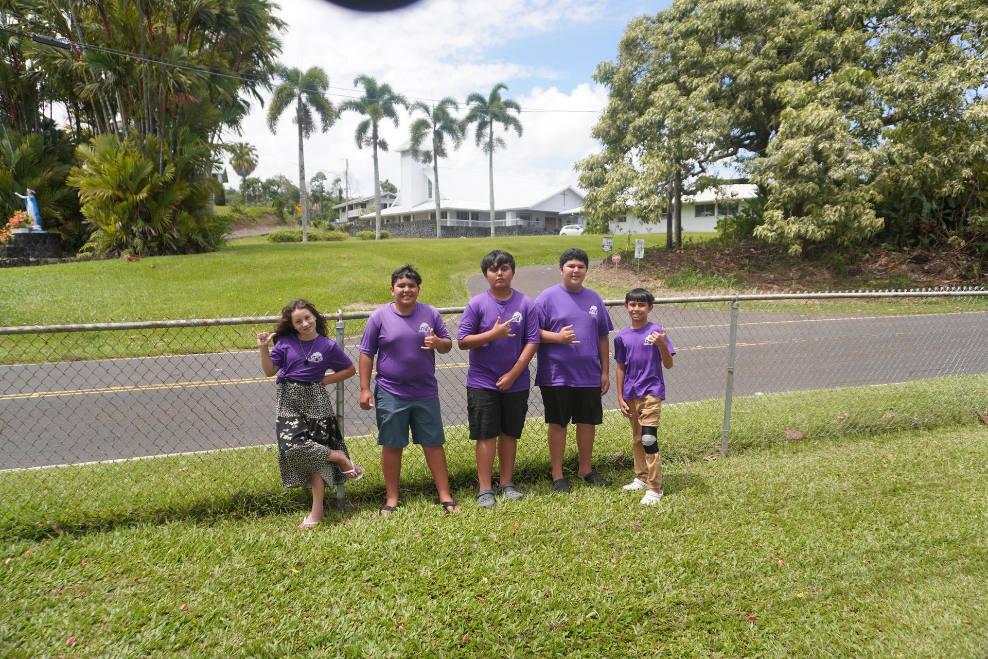 Meet our 25/26 News Show Team! From left: Zoe Pound, Michael Stanley, Caden Keliʻi, Kelstan Kauwe-Krammer, and Ridge Wamar.